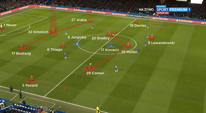 ألفونسو ديفيز اختراع، لاعب طرفي مميز، ظهير بدرجة جناح، سريع وقوي بدنياً، والأهم من كل ذلك لديه القدرة على التصرف الصحيح بالثلث الأخير، لذلك بكل سهولة يتحول جنابري إلى العمق، كمهاجم إضافي، مستغلا الفراغات التي يصنعها ليفاندوفيسكي، بسبب انشغال المدافعين برقابته.