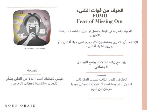 ◾️السبب الحقيقي و الوحيد وراء نجاح التسويق للمهرجان الكذبي >المشاهير خلقو مايسمى ال FOMO احتفال ..تكلمت عن هذي الرغبة الملحة في عدم تفويت اي شيء (احداث، حفلات،...) المنتشرة بسبب كثرة استخدام #السوشل_ميديا و تستخدم الfomo كحيلة تسويقية جذابه جدا و ناجحة