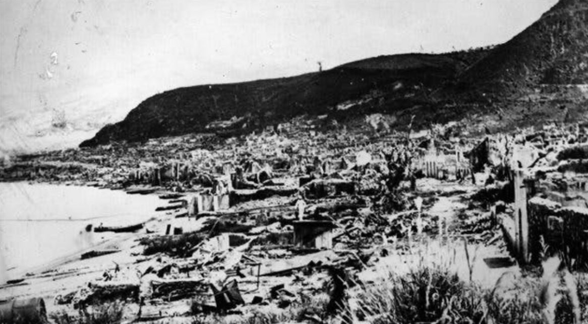وبناء على شهادة مرعبة قدّمها ركّاب عدد من السفن المتواجدة في عرض البحر حلّت كرة نارية ملتهبة فوق المدينة الملقبة بباريس الكاريبي متسببة في محوها من الخارطة.