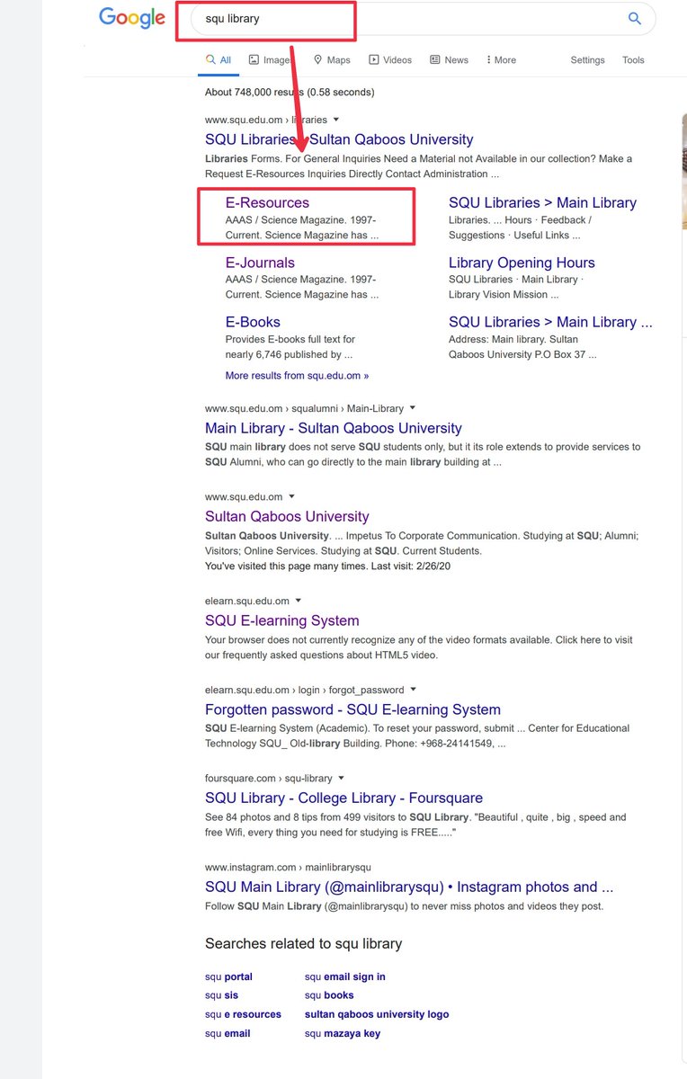 1- تكتب في جوجل SQU library ثم