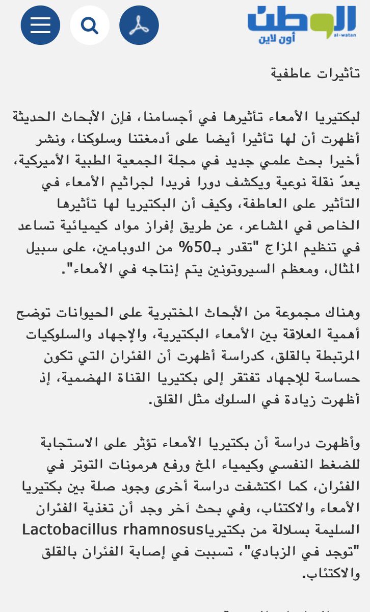 و بعض البكتيريا المتعايشة في الجهاز الهضمي تساعد على هضم الغذاء وتحسين أداء الحسك والعقل أيضا.