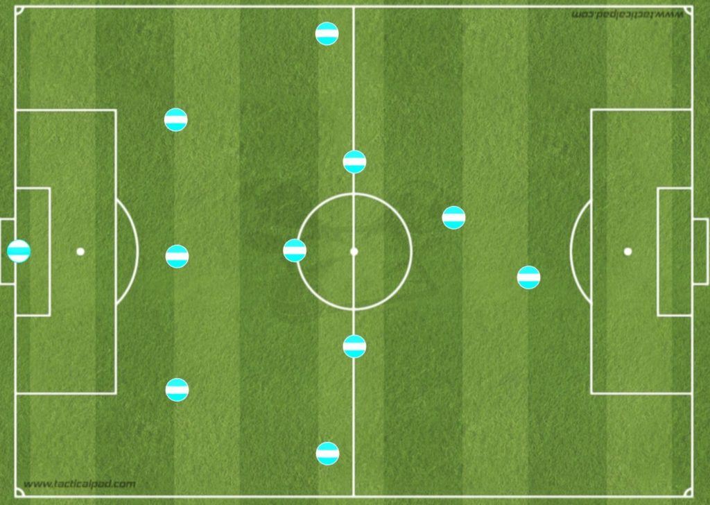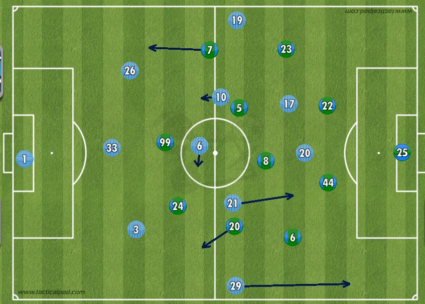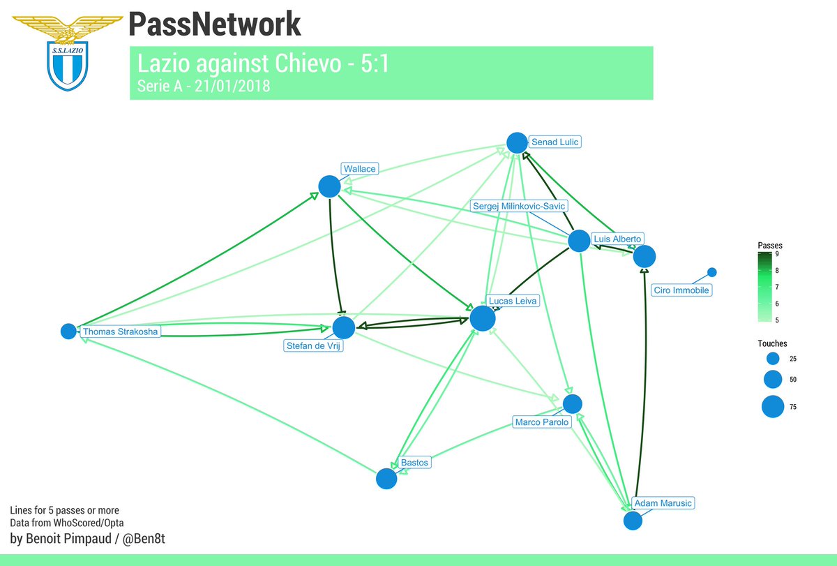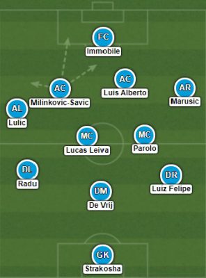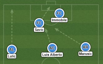 ▪️يتم عكس الأدوار بين ( Luis Alberto / Milinkovic ) الأول يتحول إلى مهاجم ثاني أو Box To Box الآخر يتحول إلى صانع ألعاب متأخر