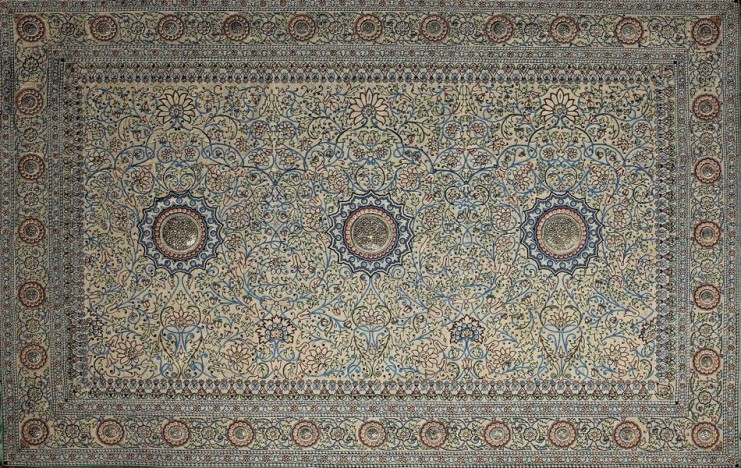 3. المهم، عندما عدت إلى البيت بحثت في النت عن قصة صناعة تلك السجادة، ووجدت بعض المعلومات عنها وتاريخ صناعتها. وخطر ببالي أن أكتب كلمتين هنا لتقديم بعض المعلومات عنها وعن تلك الإمارة الهندوسية التي اهتمت بصناعتها وعن ذاك المهاراجا الذي أنفق كل تلك الأموال على صناعتها.