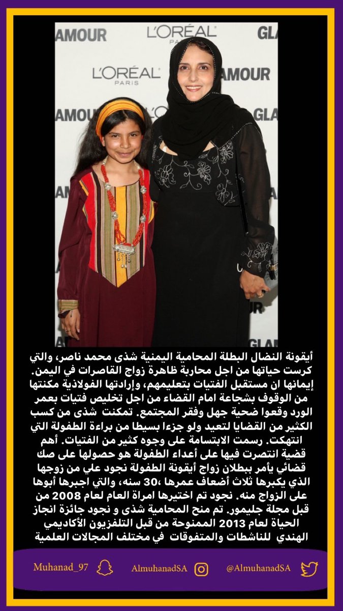 المحامية اليمنية شذى محمد ناصر، والتي كرست حياتها من اجل محاربة ظاهرة #زواج_القاصرات في #اليمن.