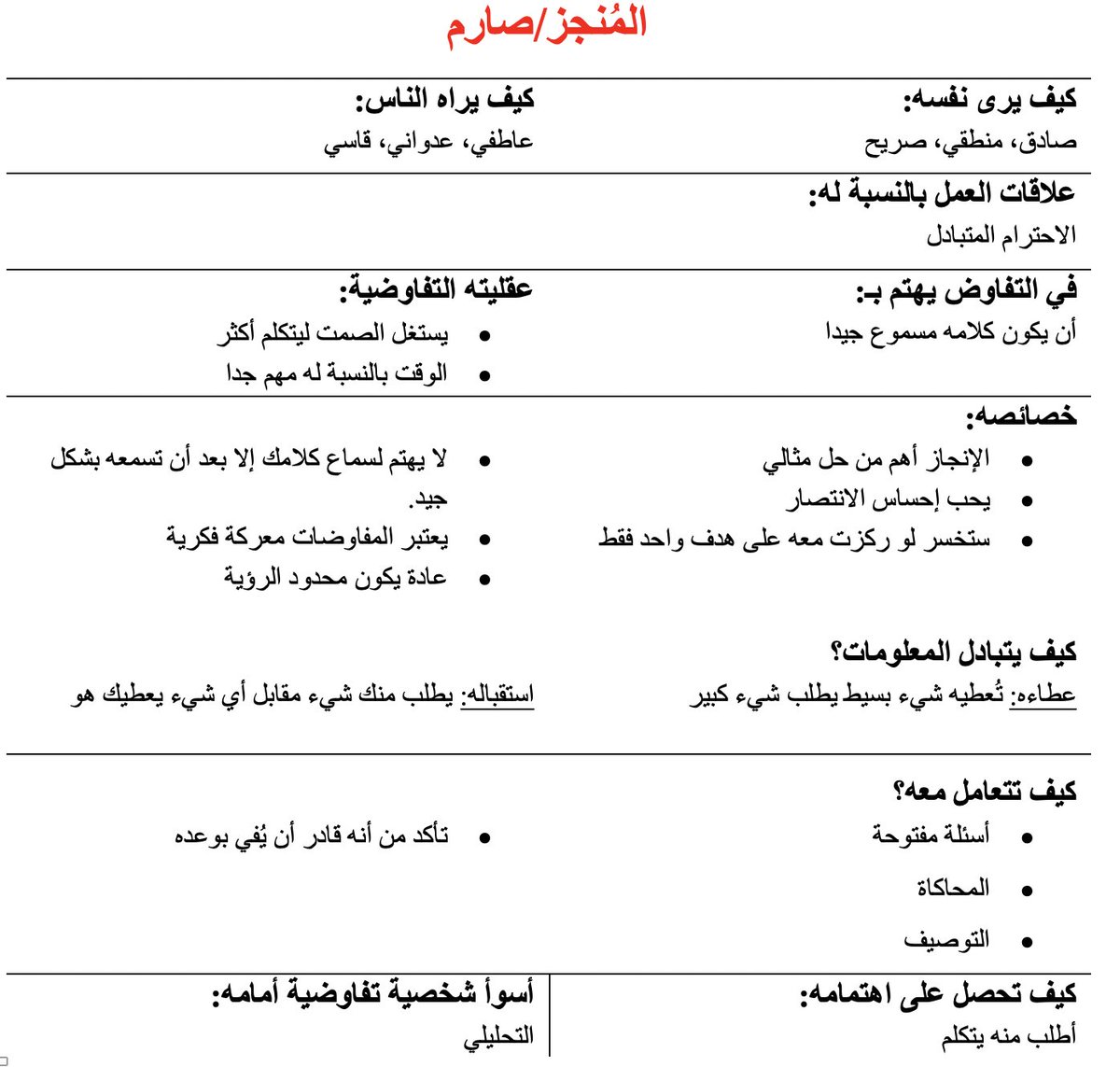 (مهم جدا: صور التغريدات التالية تُلخص جميع خصائص الشخصيات التفاوضية وكيف تفكر وكيف تتعامل مع كل شخصية)