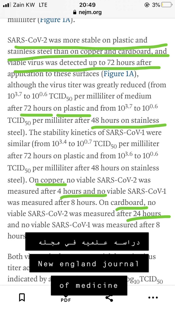 دراسه على مدى ثبات فيروس كورونا المستجد (Sars-Cov-2) على مختلف الاسطح. و هذا ليش مدعاه للهلع ؛ هذا في حال عدم التعقيم