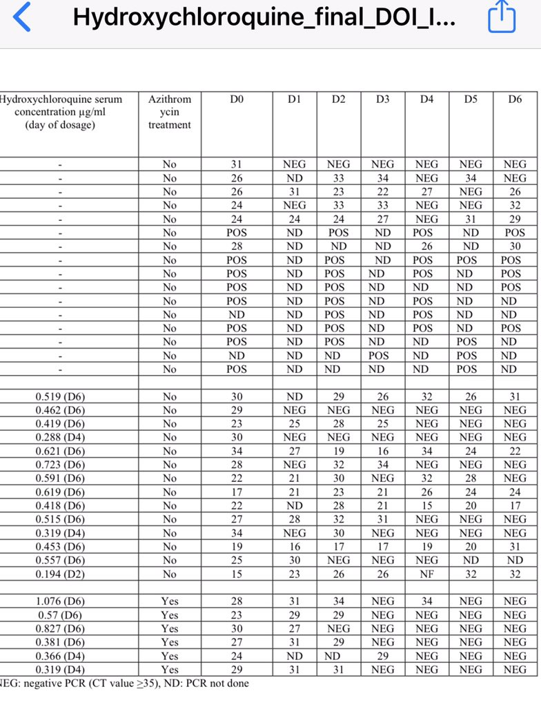 ?سترى أن خط الأساس للقيمة (Ct) من 24 أو أعلى، في حين أن 5 من المرضى في عمود العلاج ب HCQ هايدروكسيكلوروكوين بذاته لديهم قيم < 23 -على وجه الخصوص 15، 17، 19، 22، 22.