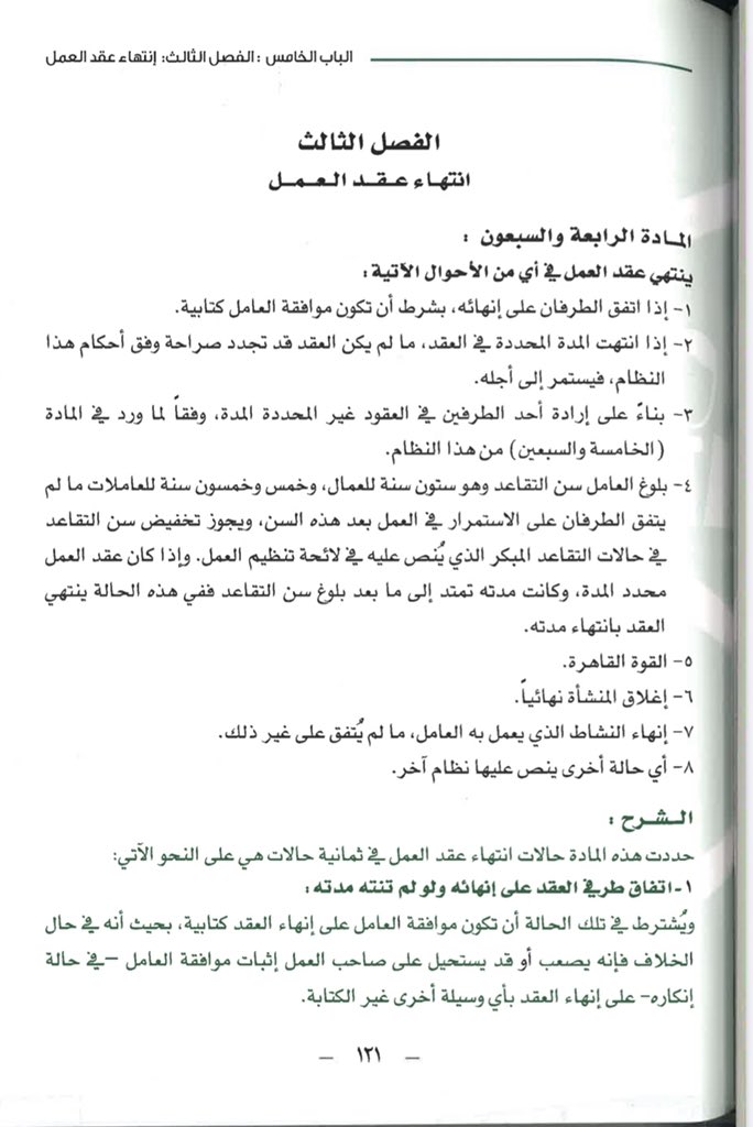 ج/ لا يحق له ذلك، وهنا نص المادة ٧٧ وشرح لها وتعتبر نادة تعويضيه لأحد الطرفين لذلك فسخ العقد بهذي الطريقة غير قانونية ويحق لك تأخذ كامل التعويضات الي نصت بنظام العمل