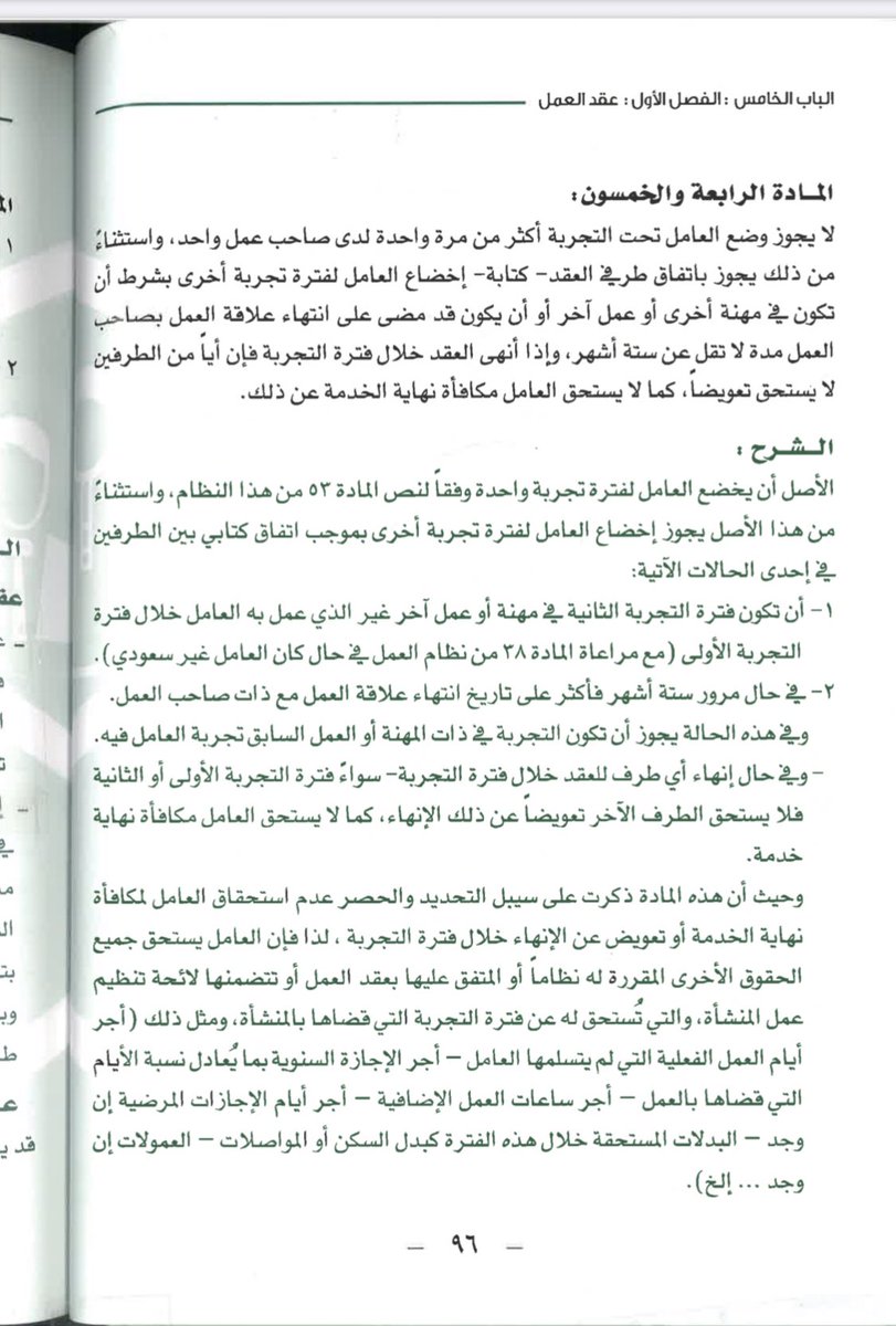 ج/ يحق له ذلك حسب المادة ٥٣-٥٤ من نظام العمل ، بحيث يحق للطرفين إنهاء العقد في أي وقت خلال فترة التجربة