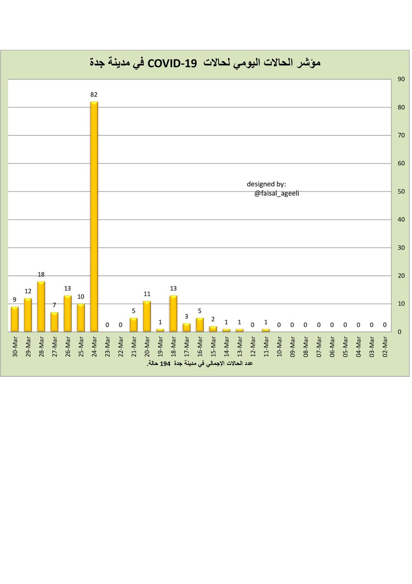 الزيادة في مؤشر الحالات هذا اليوم ليس مقلقًا بدرجة كبيرة ، لازال المؤشر تحت أعلى رقم تم تسجيله ( 205 ) أضف إلى ذلك مازال تسجيل حالات مرتبطة بالسفرمستمر ، والأهم من ذلك أن نتائج قرارات منع التجول والعزل المنزلي لا تظهر في غضون أيام ، نحتاج إلى أسبوعين أو أكثر.5️⃣