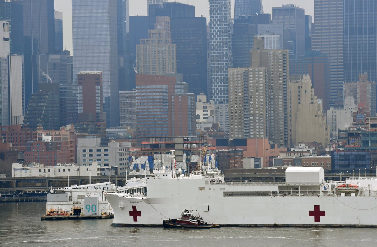 وبينما تعاني #نيويورك من نقص حاد في أجهزة التنفس الصناعي، يمثل المستشفى العائم "كومفورت" دعماً لها، فيما سيستقبل الحالات غير المصابة بكورونا من أجل تخفيف الضغط على المستشفيات الأخرى، وسيساعد في توفير الإغاثة