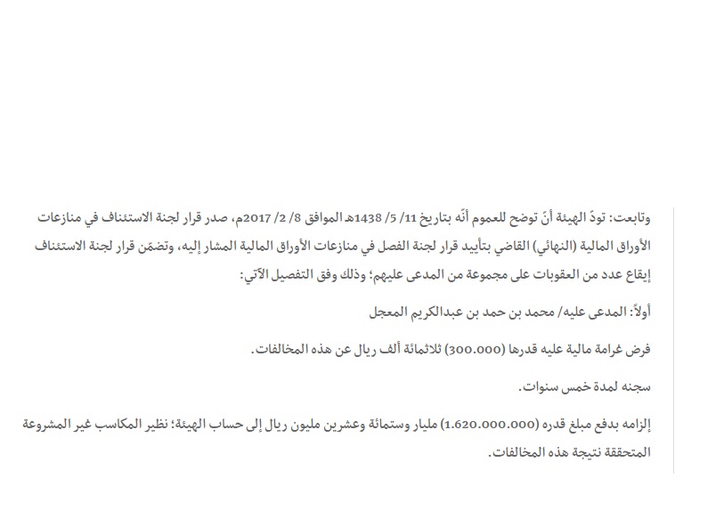 السبب الأهم: قلة الرقابة من هيئة سوق المال ومن وزارة التجارة.