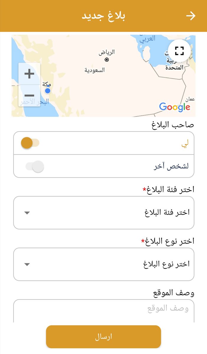 2- تصريح لنقل حاله طارئة عبر الاسعاف عن طريق التطبيق اختيار "بلاغ جديد" ثم تعبئة البلاغ و إرسالة . . او الاتصال على #الهلال_الأحمر 997