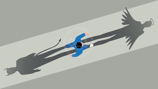 لدى المدمن ذات حقيقيه وذات وهميه هو صنعها لتكون مقبوله من الناس طبعاً هذه العمليه لا يقوم بها بوعي يعني دون ان يشعر