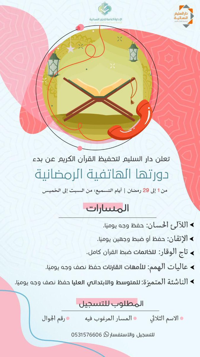 ??سأضع تحت هذه التغريدة اعلانات الحلقات الهاتفية الرمضانية "عن بعد"التابعة للدور النسائيةببريدة: