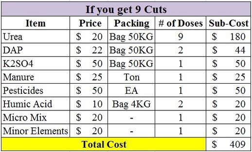 عدد القطعات بالسنة معظم المزارعين في السودان يخططون للحصول على ١٠ قطعات بالسنة ولكن لمسببات كثيرة من النااادر جدااا الحصول عليها، معظمهم يحصلون على (٩ او ٨) 👇
