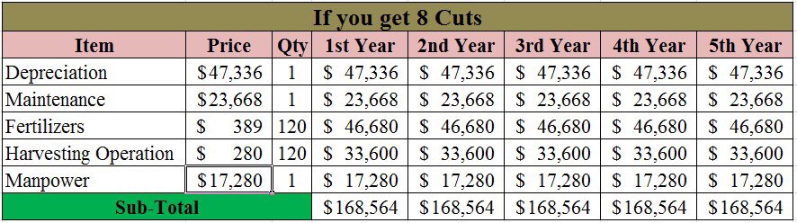 قبل الوصول لجزئية العائدات، أود ان اوضح ان الإنتاجية تقاس ب الكمية (بالطن/الفدان) مضروبة بعدد القطعات بالسنة.