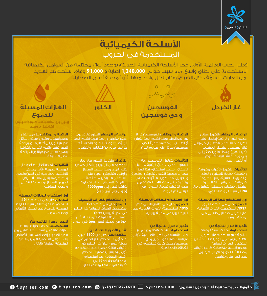 (خامسا) ست هجمات غاز الفوسجين وحدها قتلت ما يقرب من 80،000 شخص: كان غاز الفوسجين هو القاتل الأكبر لجميع الأسلحة الكيميائية المستخدمة في الحرب ومن بين 91000 جندي قتلو بسبب الغازات السامة قُتل 85٪ منهم بسبب هجمات الفوسجين فقد كان قاتلًا بطيئًا وسريًا ولم يجعل ضحاياه…