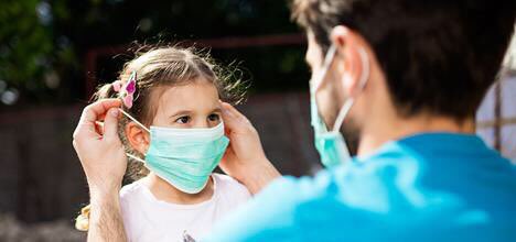 أوصت الأكاديمية الأمريكية لطب الأطفال بتغطية الوجه بالقناع العادي أو بقطعة قماش عند خروج الطفل للضرورة، سيما في الظروف التي لا يمكن الحفاظ على المسافة الصحية بين الطفل و مخالطيه (٦ أقدام) تعادل متر و ٨٠ سم و لكن للتسهيل نتحدث عن متر و نصف.
