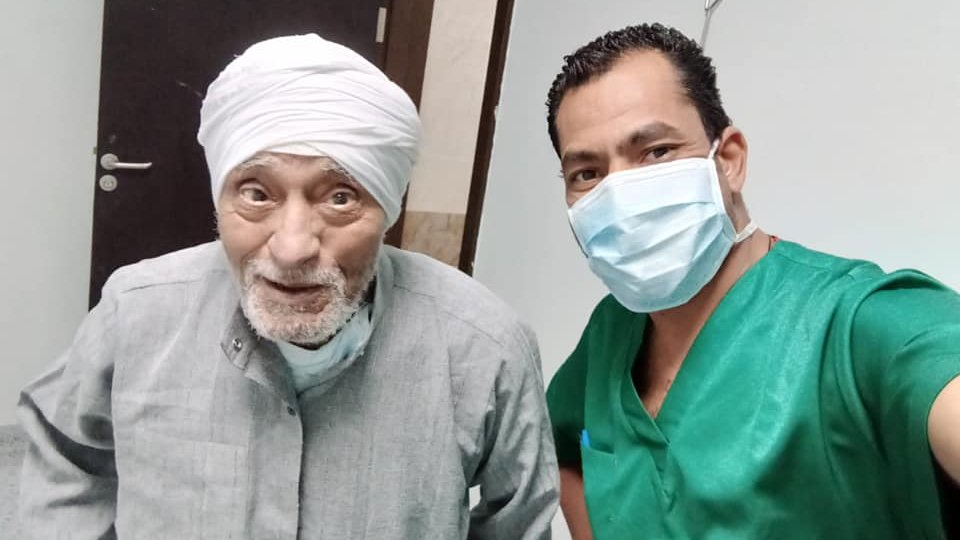 1) واحدة من أهم القصص الملهمة داخل مستشفى إسنا التخصصي للعزل والحجر الصحي بالأقصر، وهى شفاء تام لأحد الحالات من فيروس كورونا وهو الحاج عبد الفتاح إسماعيل الحامدي الذي يبلغ من العمر 89 سنة، والذي تعافى تماماً وخرج في الساعات الأولى من اليوم الجمعة، بعد سلبية نتائجه أكثر من مرة.