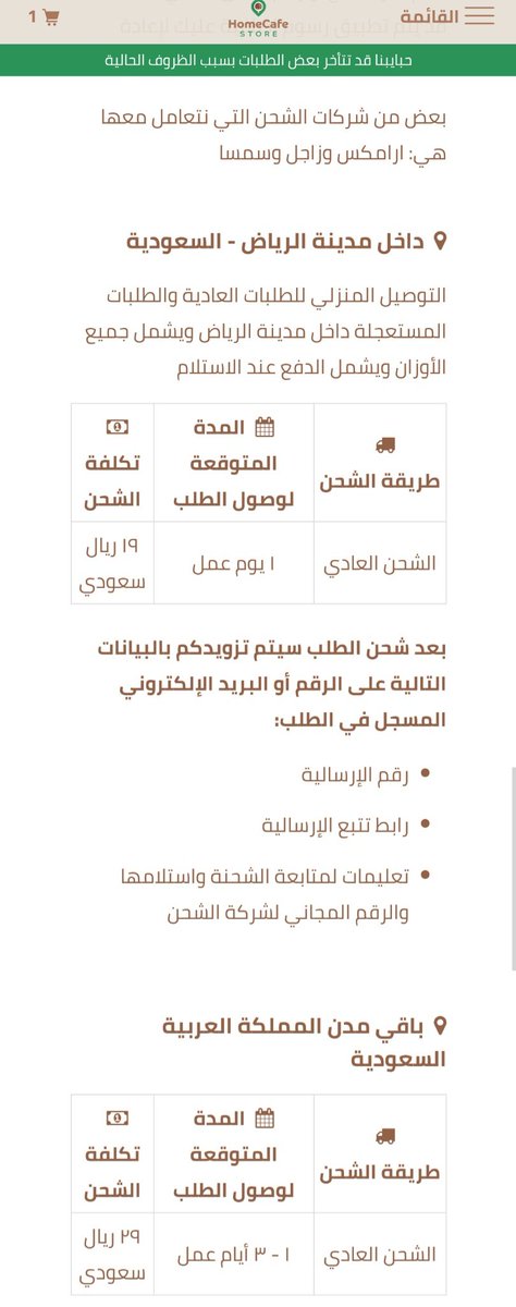الشحن خارج الرياض مع سمسا وطبعا الشحن الى الفرع وليس الى المنزل .