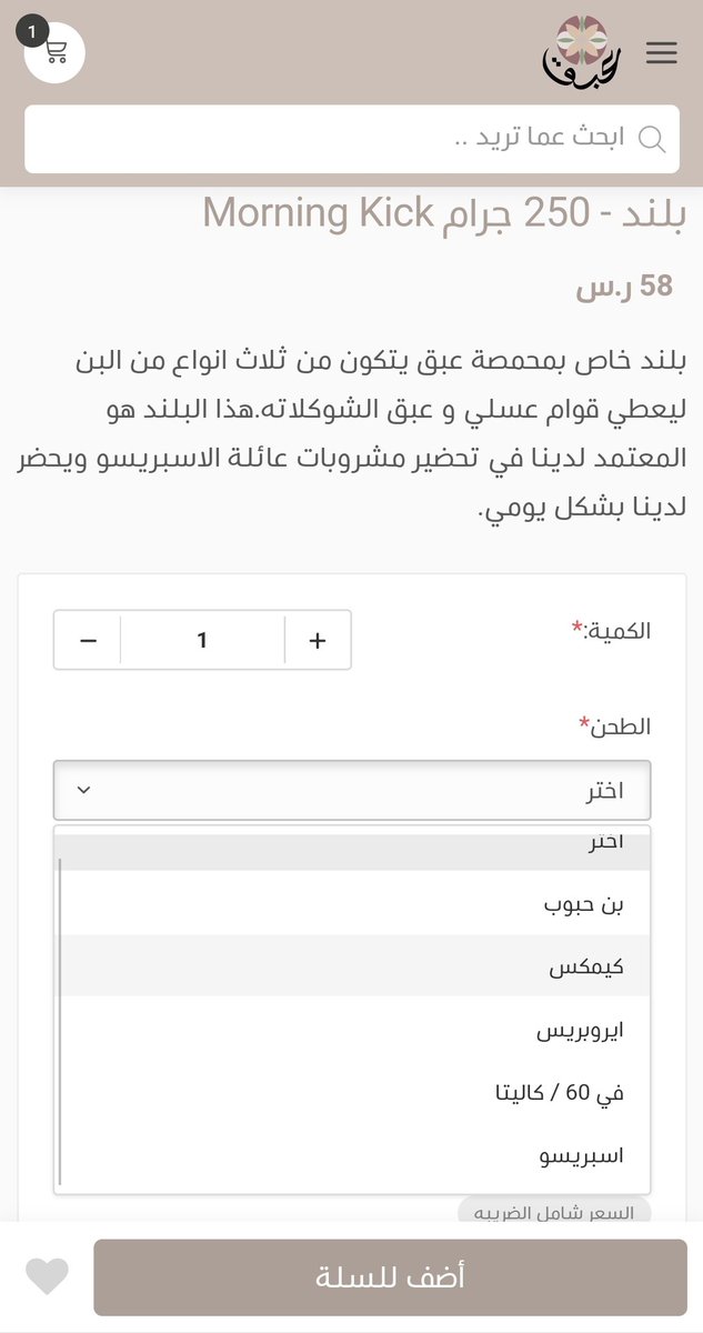 متجر خيارات القهوه عنده قهوه من عدة محامص قهوه محلية شهيره . لكن اكثرها مخلص حاليا . الشحن مع ارامكس