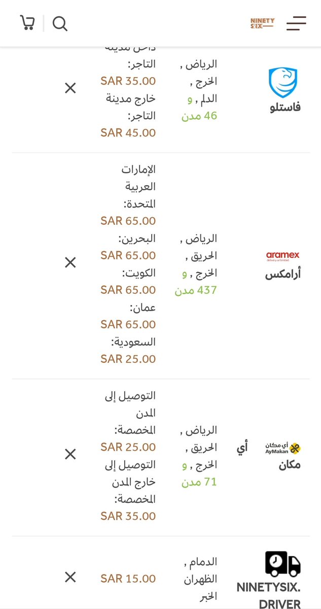 و خارج الدمام مع ارامكس و فاستلو و اي مكان