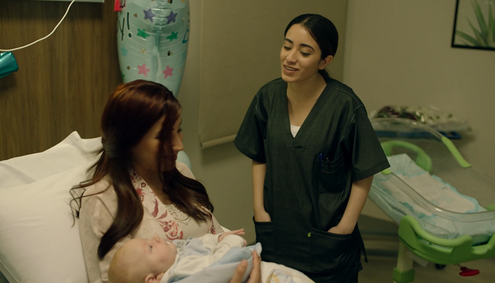 أما في مسلسل #لعبة_النسيان فظهرت #دينا_الشربيني بشخصية رقية وهي تحمل طفلها عقب ولادته، إلا إن الطفل كان أكبر من الطبيعي لطفل حديث الولادة