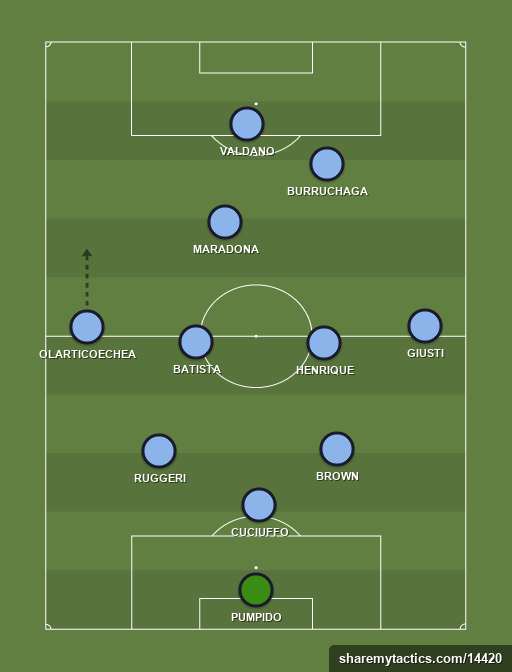في سنة 1978 اعتمد مينوتي كرة هجومية مطلقة، لعب برسم 4-3-3 مع انسيابية استثنائية وفهم لتمركز اللاعبين، قلص الملعب حين يخسر الكرة وجعله كالبحر حين يملكها. فازت #الارجنتين على #هولندا في النهائي حينها وما زال #كيمبس ثاني اكثر لاعب ارجنتيني سجل اهداف في نسخة مونديالية واحدة (6).