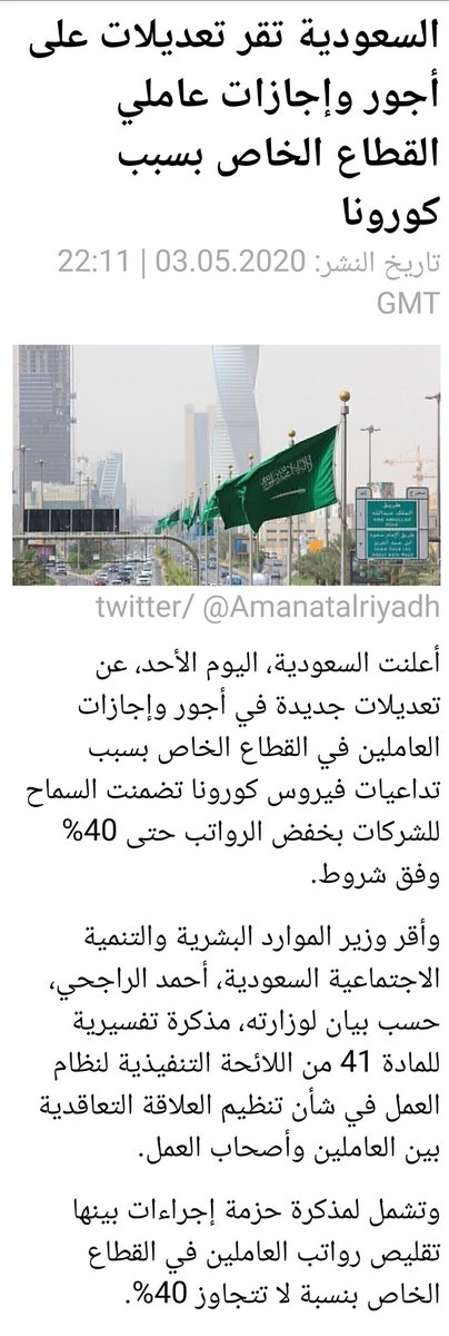 أتخيل حال الي رواتبهم ٣ و ٤ أو حتى ٥ آلاف ، ماذا لو فعلتها شركاتهم وخفضت رواتبهم بنسبة 40%