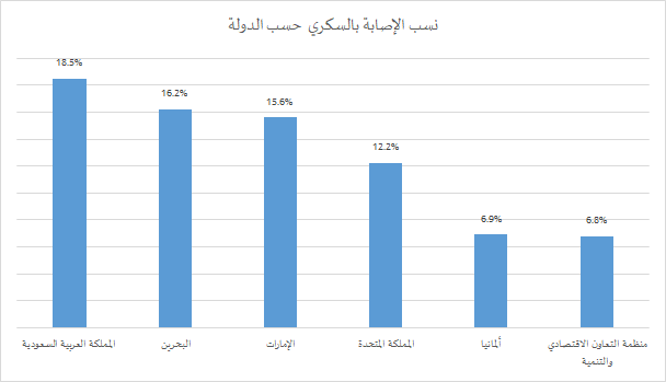 المصادر : شركة استراتيجي آند , مؤشرات التنمية العالمية ومنظمة الصحة العالمية والاتحاد الدولي لمرضى السكري ومنظمة التعاون الاقتصادي والتنمية, وزارة الصحة, ميد , تداول, هيئة المعلومات والحكومة الإلكترونية في البحرين والهيئة الاتحادية للتنافسية والإحصاء في الإمارات.