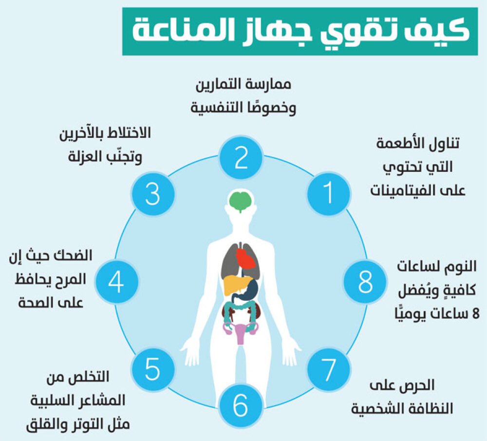 لذلك الحفاظ على #الجهاز_المناعي و تقويته هو اهم مراحل الوقاية من جميع الامراض و ندعو الجسم للبعد عن العادات السئية و التي تدمر المناعة الذاتية