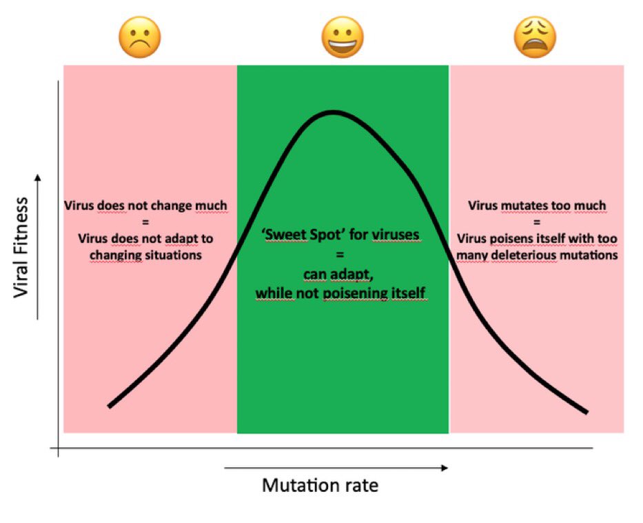 ولكن في كثير من الأحيان تكون خطوة التحسين(الطفرات للفيروس)غالبًا ما تكون تدريجية،في الوقت نفسه ، عليك أن تلاحظ أنه لا يوجد سبب منطقي لحدوث طفرة معينة بسبب الفيروس.ليس هناك نية لحدوث طفرة من هذا القبيل.تحدث هذه الطفرات في جميع أنحاء الجينوم الفيروسي ،بشكل عشوائي تقريبًا ومستمر.(٧)