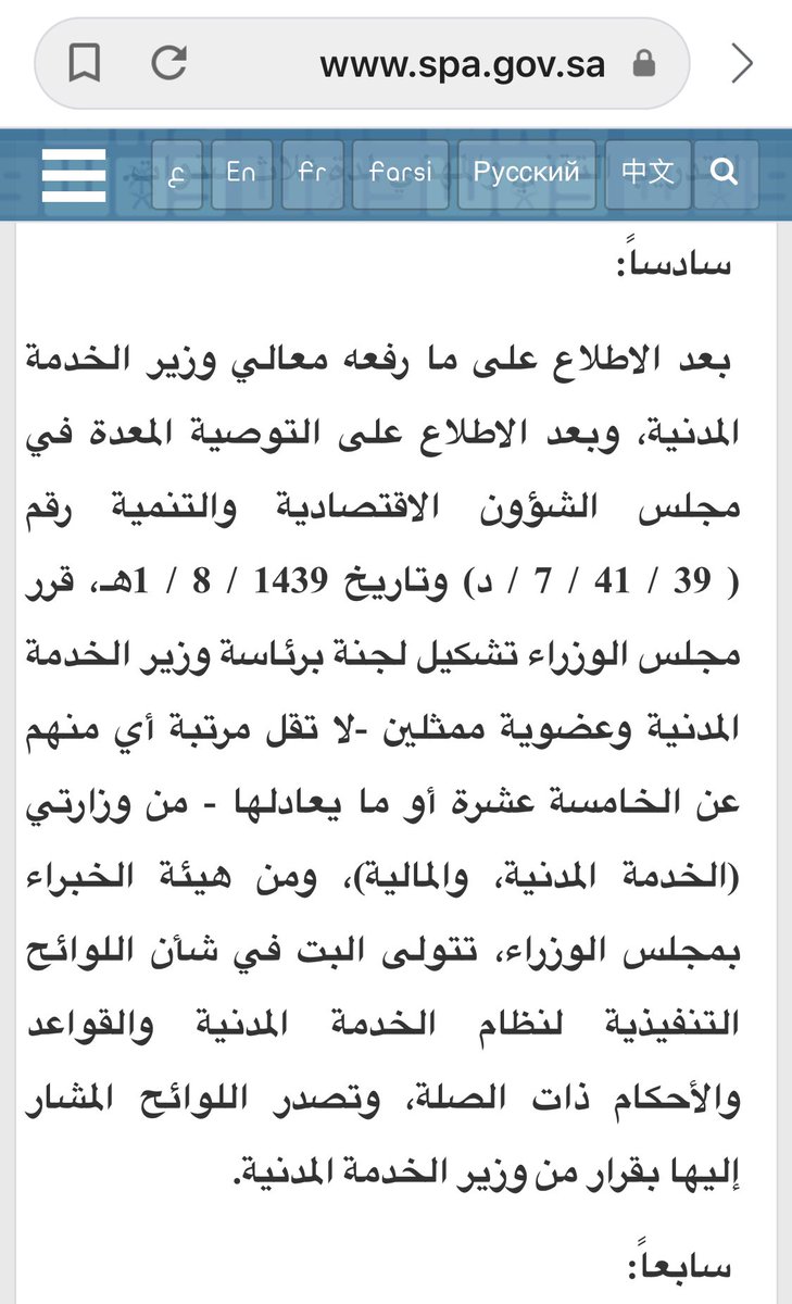 @ssnady592 2. بتاريخ 1440/1/29هـ صدر قرار مجلس الوزراء رقم (75) بتشكيل لجنة برئاسة وزير الخدمة المدنية تتولى البت في شأن اللوائح التنفيذية لنظام الخدمة المدنية والقواعد والأحكام ذات الصلة،