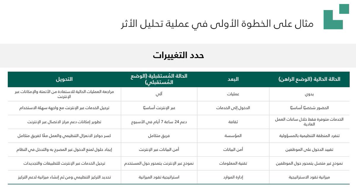 1⃣ وضع إطار لتحليل أثر التغيير من خلال تحديد التغييرات بالتفصيل: