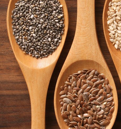 المكسرات والبذور مثل ؛المكاديميا، بذور الشيا، بذور الكتان
