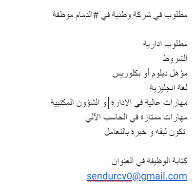 وصلني هذا الاعلان من أحد مسؤولي التوظيف الراغبين بالمشاركة :