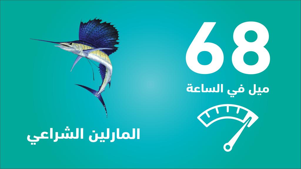 تليهم سمك المارلين الشراعي حيث بلغت اقصى سرعة لديها 68 ميل في الساعة او مايعادل 109 كليومتر في الساعة
