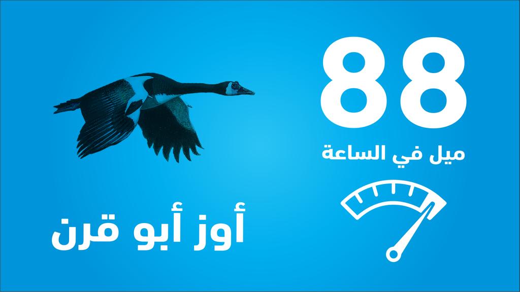 ثم طائر الاوز ابو قرن حيث بلغت اقصى سرعة لديه 88 ميل في الساعة او مايعادل 142 كليومتر في الساعة