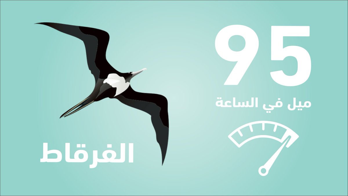 يليها طائر الفرقاط حيث بلغت اقصى سرعة لديه 95 ميل في الساعة او مايعادل 153 كليومتر في الساعة
