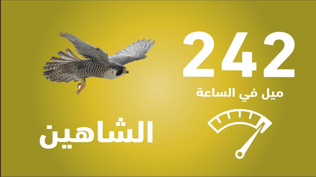 واخيرا الطائر الاسرع بانقضاضة على فريسته طائر الشاهين حيث ينقض عليها بسرعة 242 ميل في الساعة او مايعادل 390 كليومتر في الساعة ويعتبر اسرع حيوانات على وجه الارض