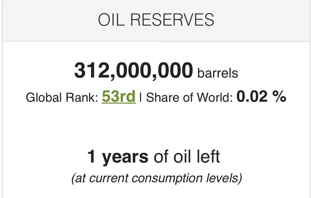 📍احتياطي نفطها قرابة 312 مليون و هو مايكفي لحدود سنة فقط من الاستهلاك