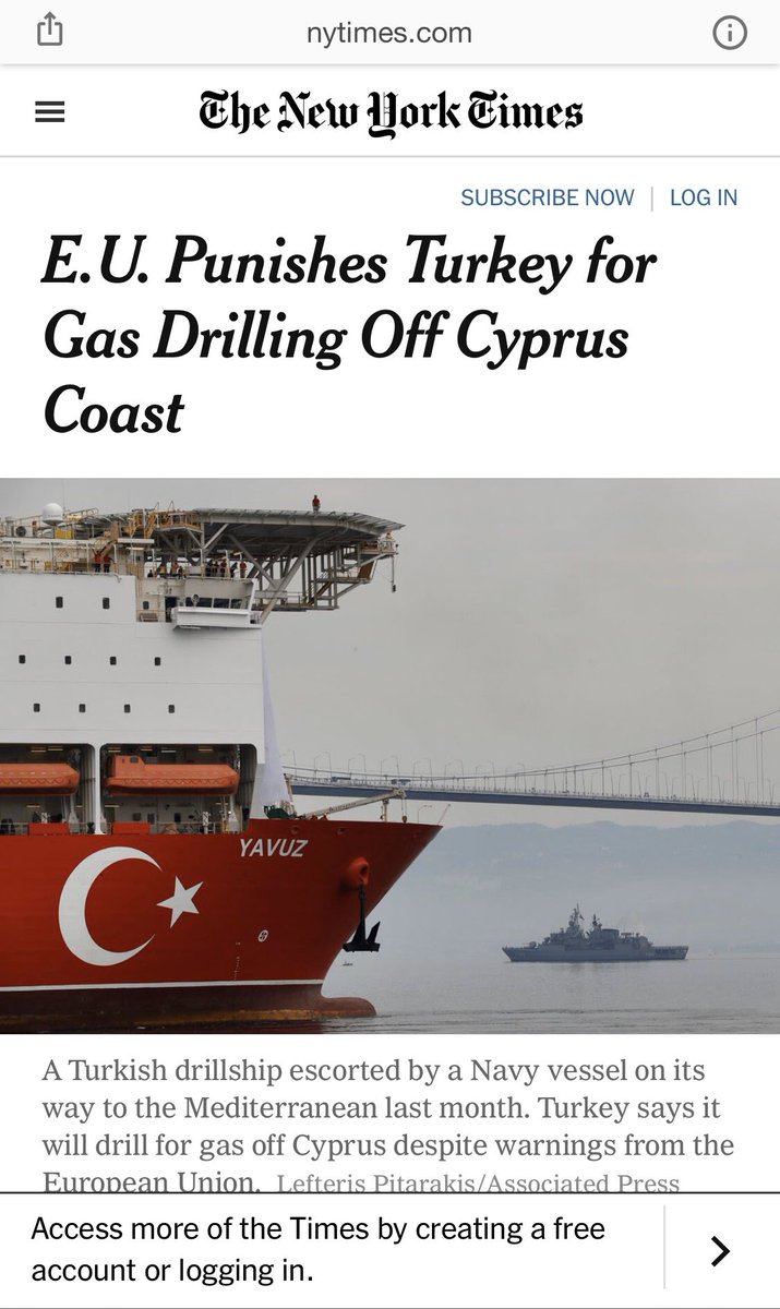 وبدأت التنقيب بالقرب من جزيرة قبرص 🇨🇾 الضعيفة سياسيا وعسكريا. لذلك قامت بالتواصل مع الاتحاد الأوروبي بهذا الشأن.