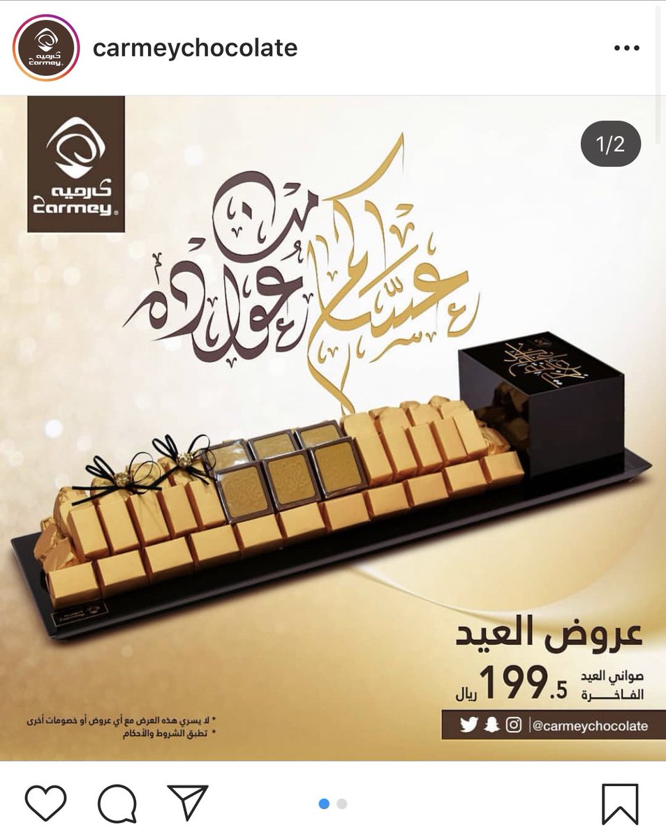 سعر الكيلو يبدأ من ٥٨٠ ريال و يوجد تشكيلة كبيرة للعيد متاحة علي موقعهم