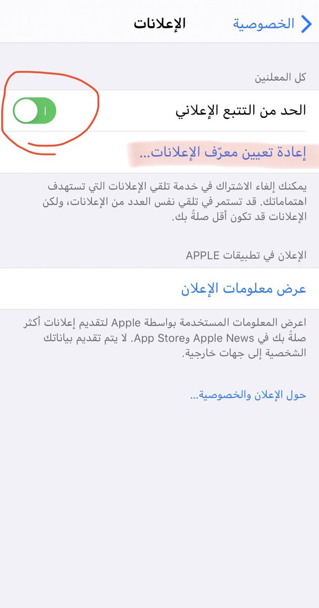 ٢. "اعادة تعيين معرف الإعلانات".