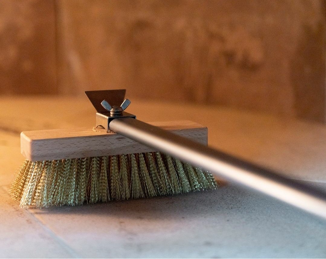 لتنظيف أرضية أفران البيتزا، استخدم المكنسة المصممة بشكل مقلوب وذات الشعيرات النحاسية.