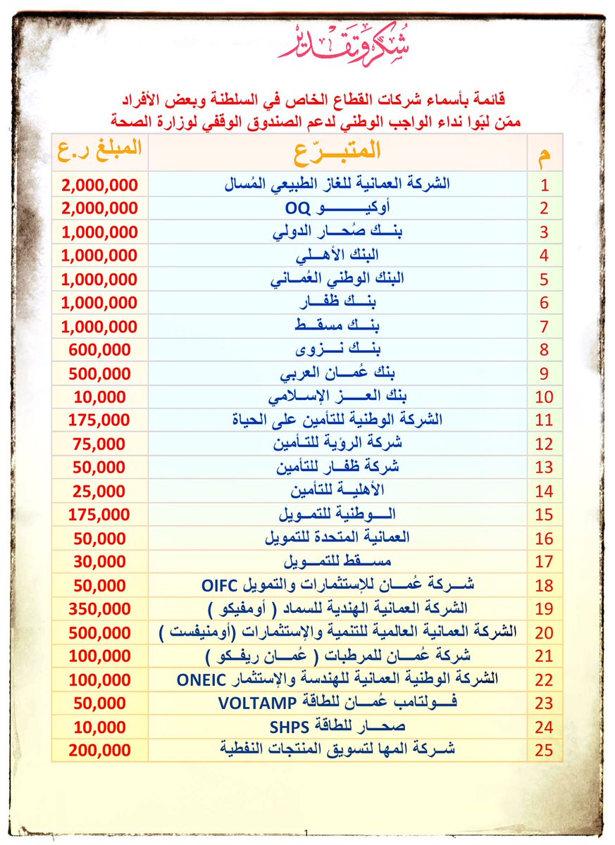 عند استعراض أسماء المتبرعين في الرابط أدناه ، لا تملك إلا أنّ تقف وقفة إحترام لرجال الأعمال الذين قّرروا الإصطفاف والوقوف لجانب وطنهم الأردن في هذه المحنة .