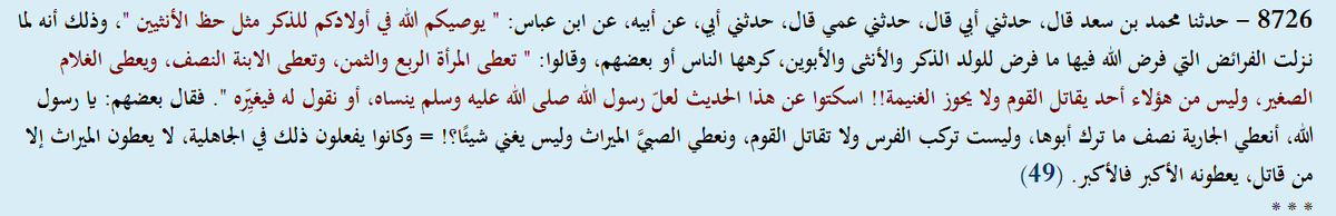 علشان الواحد يقدر يفهم المواريث محتاج يفهم سياق المجتمع وقتها، اللي كان الميراث فيه بيروح للابن الذكر المقاتل.