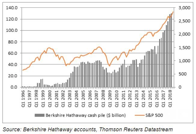 تمتلك شركة Berkshire ما يقارب 480 بليون ريال سعودي من الكاش والقيمة السوقية لشركة Berkshire هي 1.7 تريليون ريال سعودي.