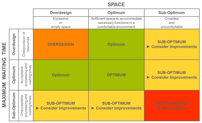 مرجع لأفضل الممارسات في صناعة الطيران فيما يتعلق بتطوير المطارات بمختلف دول العالم حيث تم تنقيح مفهوم مستوى الخدمة (LoS) في المطارات بشكل كامل ليعكس بشكل أفضل عدد من الإجراءات المتعلقة بالآتي: